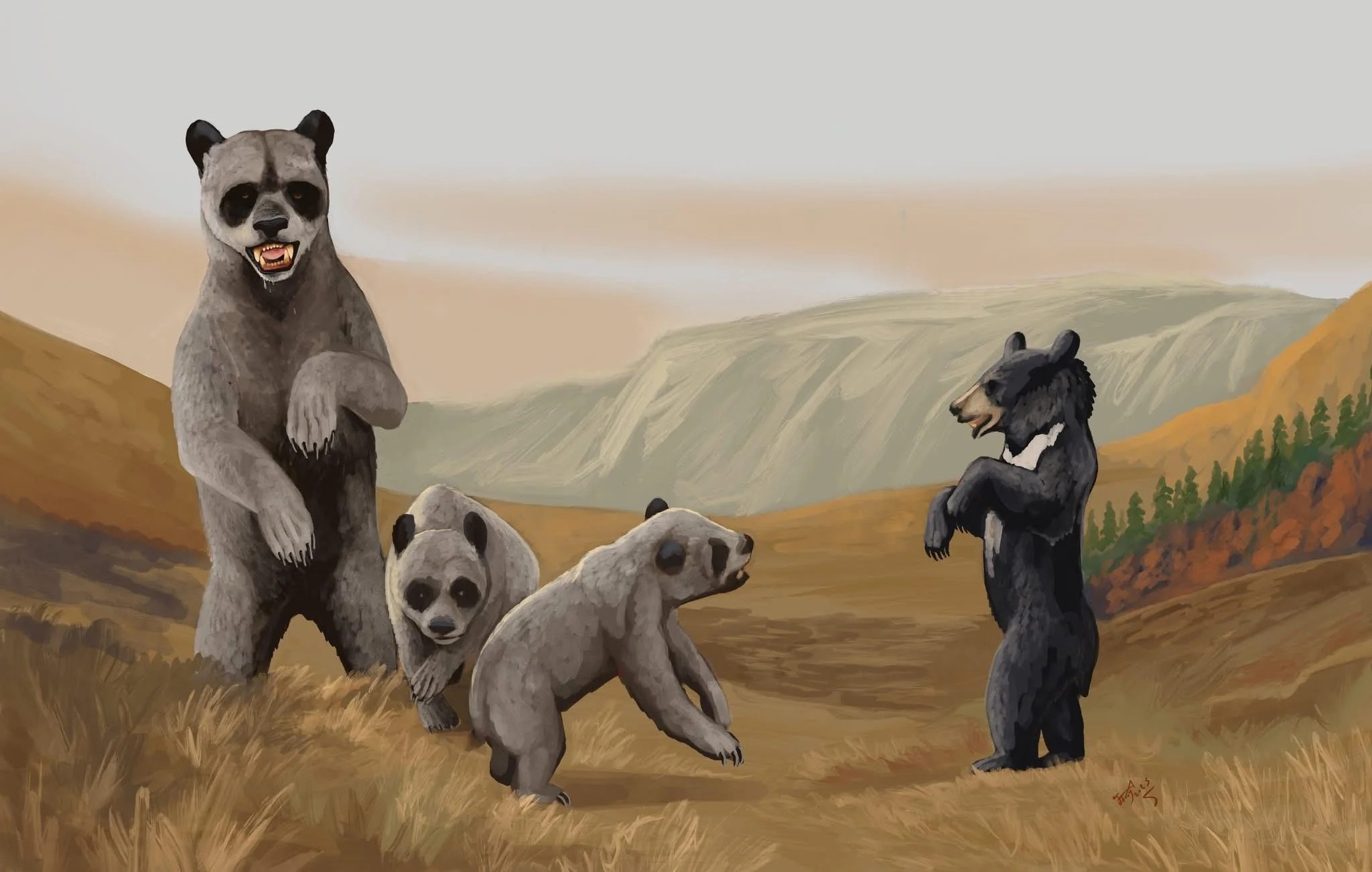 Huracan borissiaki – гигантский штормовой медведь (Уракан – бог ветра и бури у индейцев майя), дюже сильный и быстрый, как ураган (да, та же этимология). Это один из самых крупных видов распространенного по миру древнего рода, из современных медведей наиболее близкого к большим пандам. Расселялись ураканы из Азии, в Европе они вымерли к концу миоцена, включая этот вид из Ставропольского края России возрастом примерно 6–5,5 млн лет. Назван он в честь первого директора ПИН АН СССР академика Алексея Борисяка.